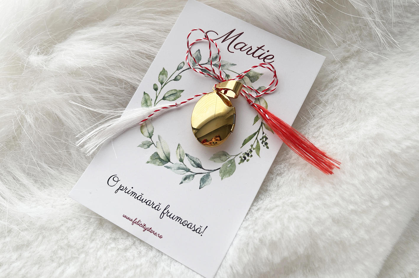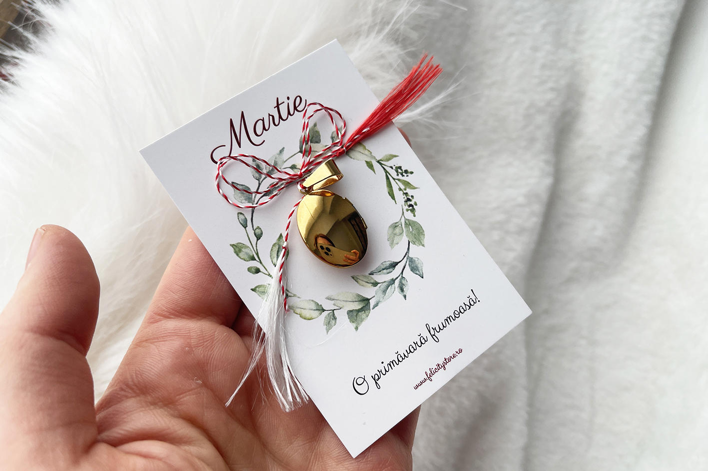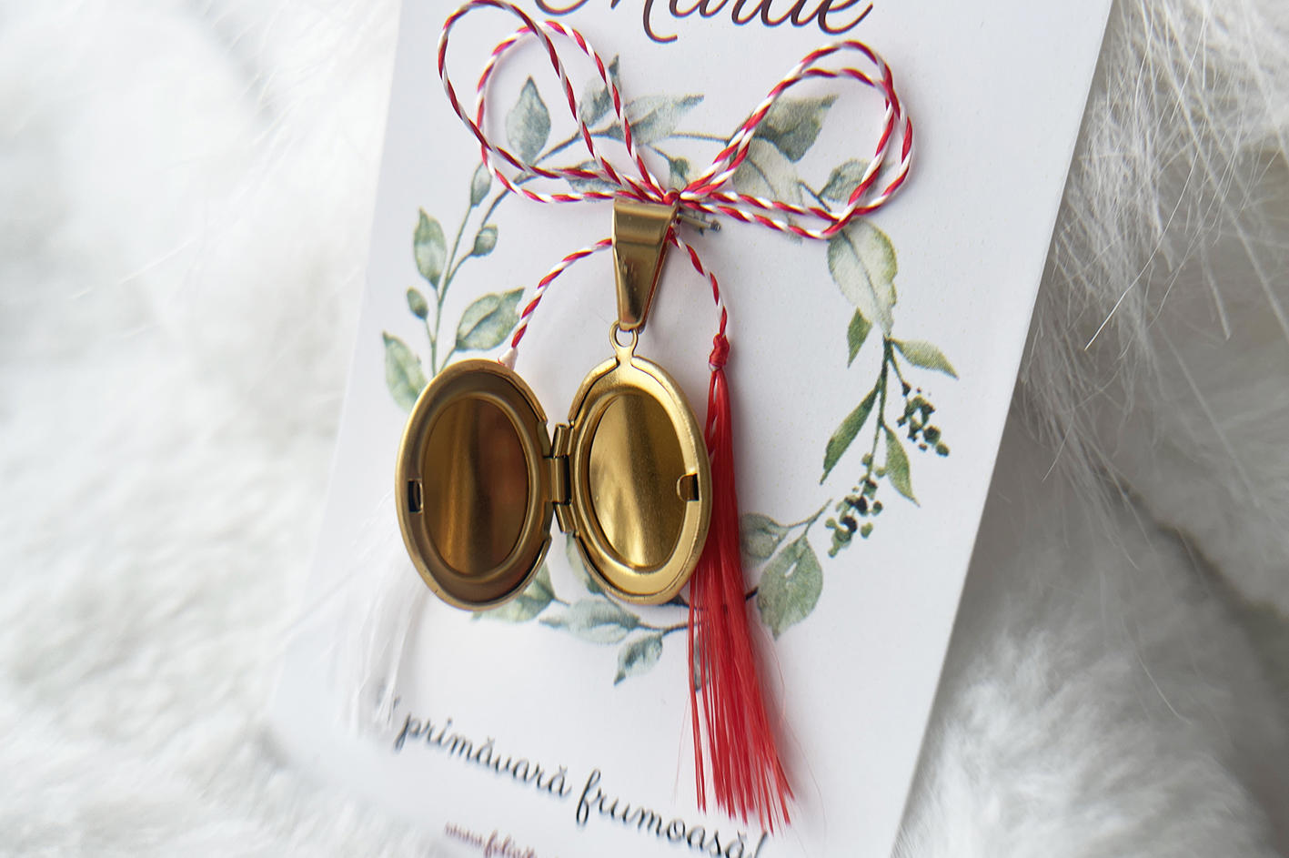 Medalionul vine pe cartonaș alături de o fundiță tip mărțișor;