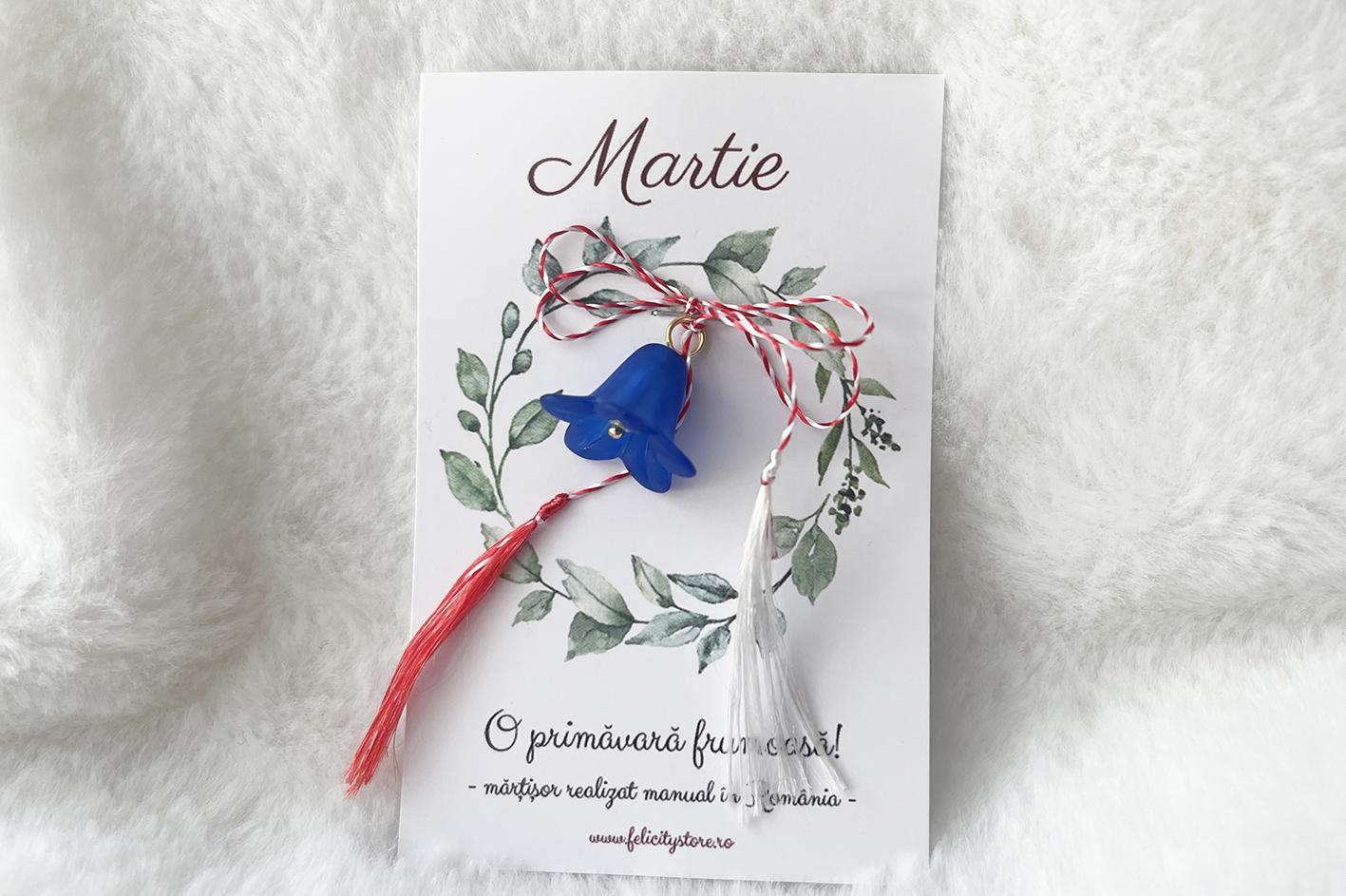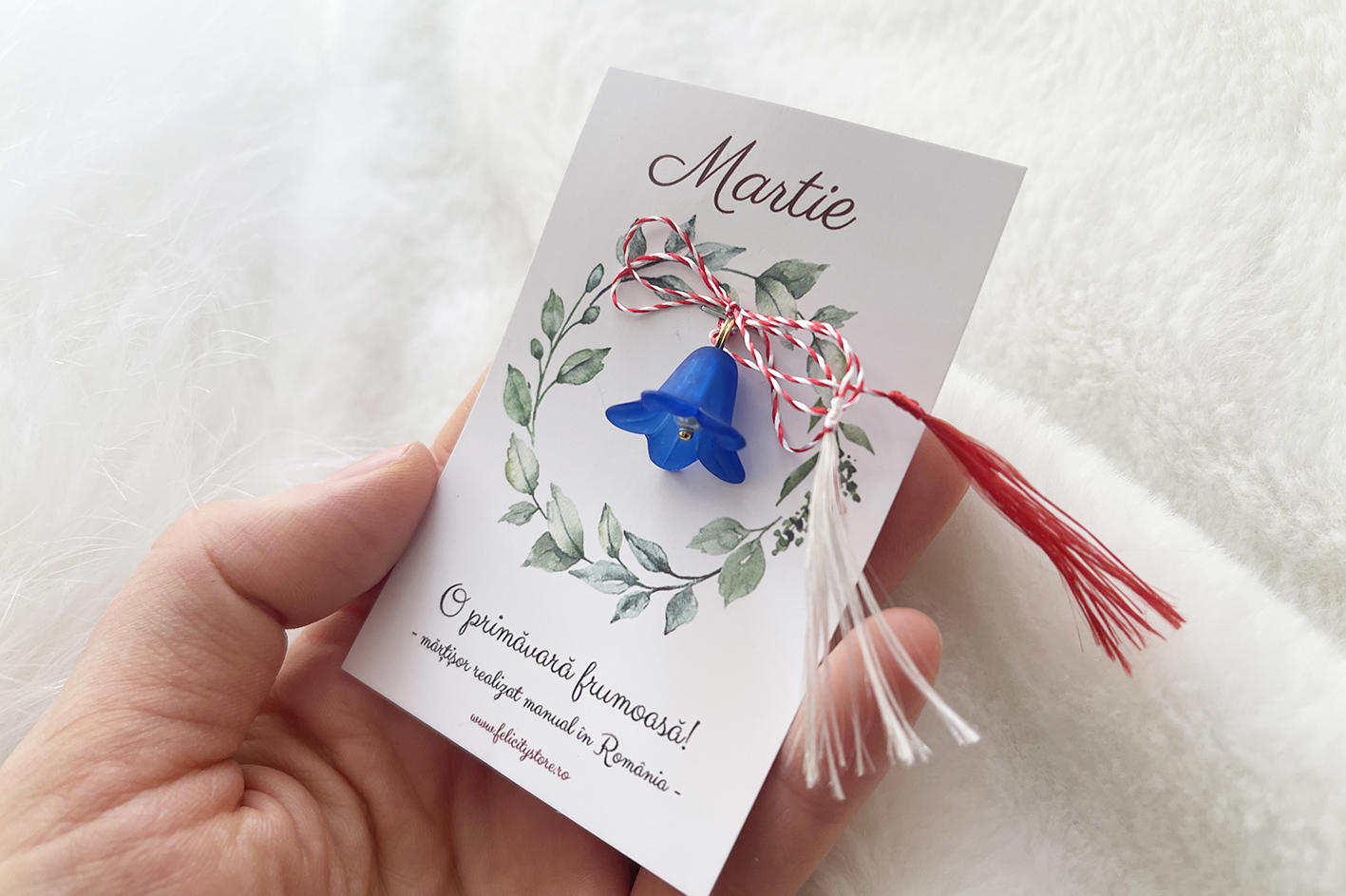 Textul de pe cartonaș, în partea de jos, poate diferi. Edițiile realizate începând cu anul 2026 poartă mențiunea „Mărțișor realizat manual în România”.